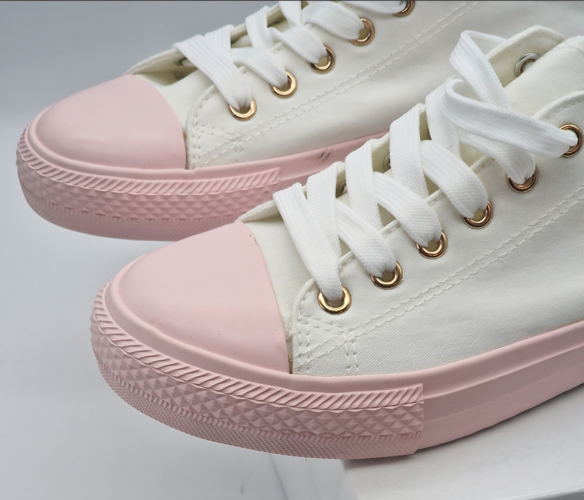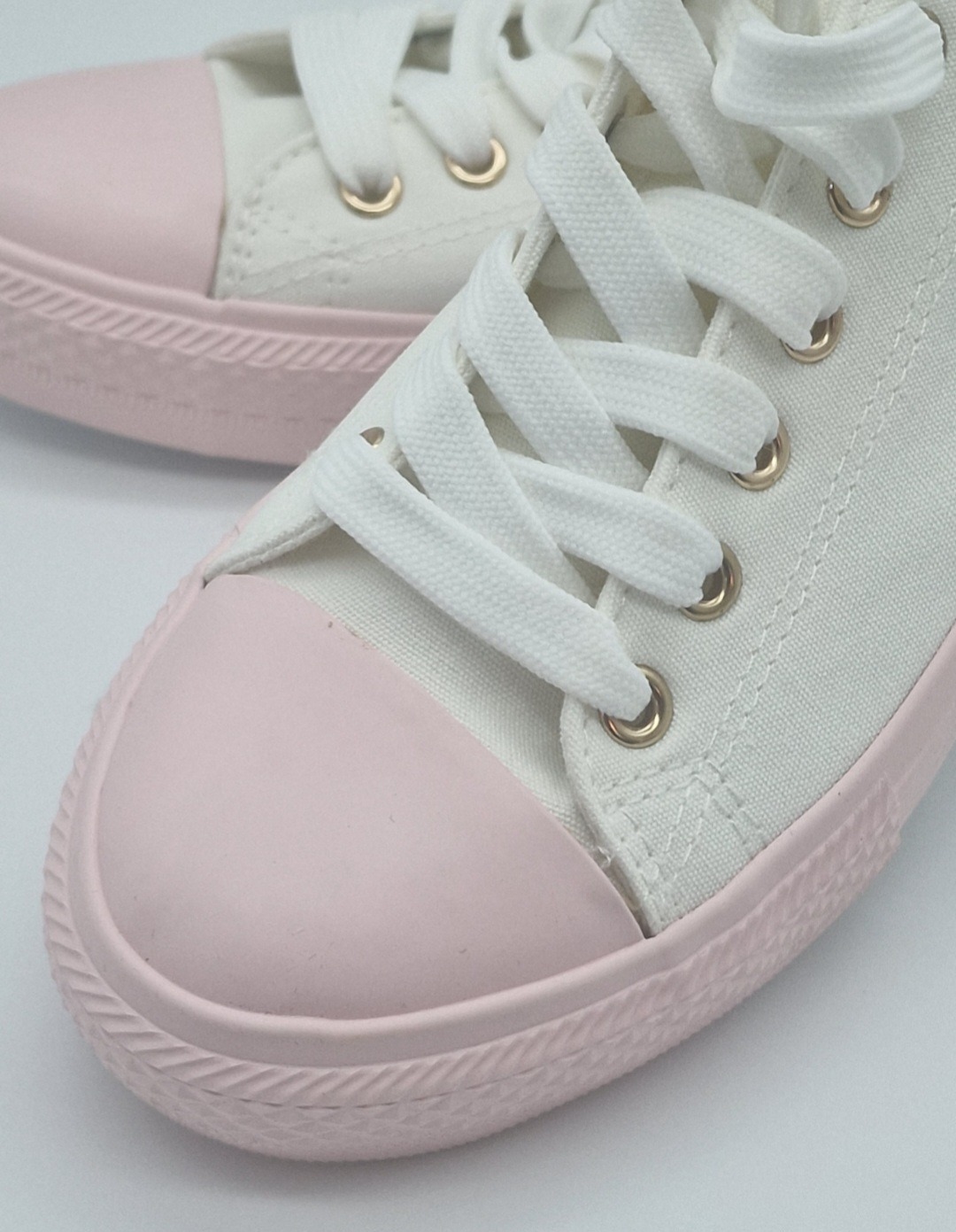 Dámské plátěné tenisky krémové s růžovou podrážkou