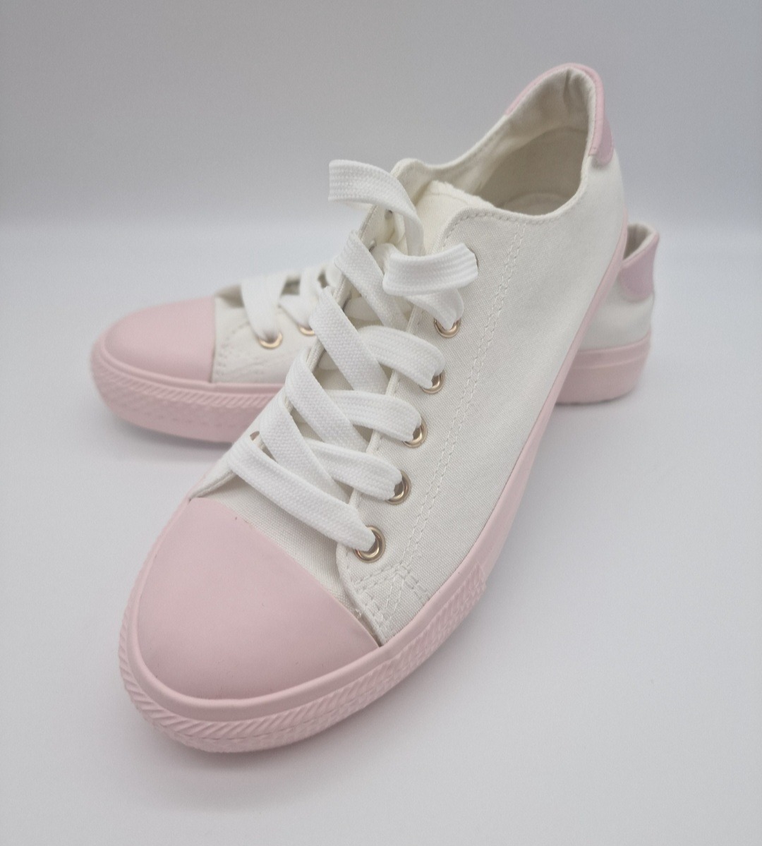 Dámské plátěné tenisky krémové s růžovou podrážkou
